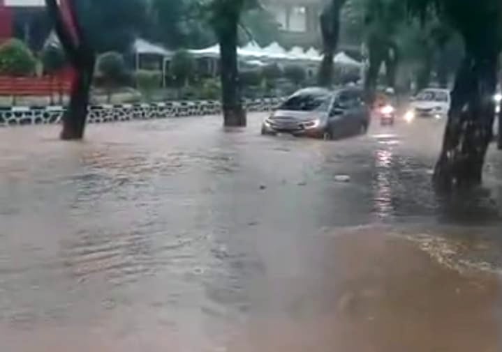 Berdasarkan video yang beredar, terlihat kendaraan roda empat maupun dua harus berjalan pelan saat menerjang genangan air.