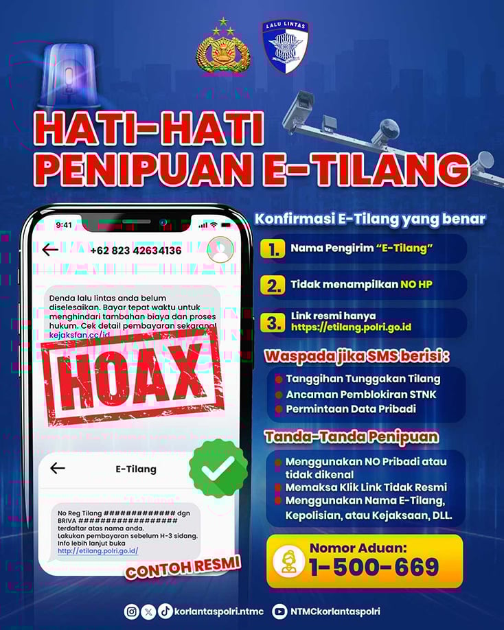 SEMARANG, iNewsSemarang.id - Maraknya pesan singkat melalui SMS maupun WhatsApp berisi tagihan denda ETLE dengan tautan (link) tidak resmi akhir-akhir ini memicu keresahan masyarakat.