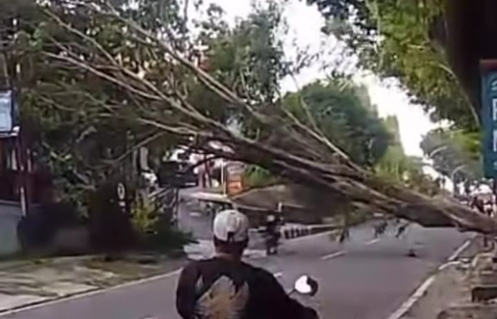 Puluhan pohon tumbang di berbagai wilayah Kota Semarang. Di beberapa titik, pohon peneduh jalan yang berukuran besar tumbang dan menimpa mobil yang sedang parkir maupun melintas.
