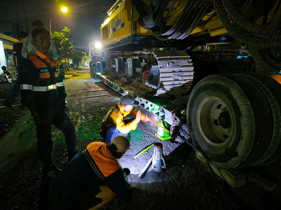 SEMARANG, iNewsSemarang.id - Perjalanan kereta api di wilayah KAI Daop 4 Semarang sempat mengalami gangguan akibat adanya truk trailer bermuatan alat berat tersangkut di perlintasan sebidang JPL 5 Kaligawe Semarang petak jalan antara Stasiun Semarang Tawang - Stasiun Alastua pada Senin (9/3/2026 malam.