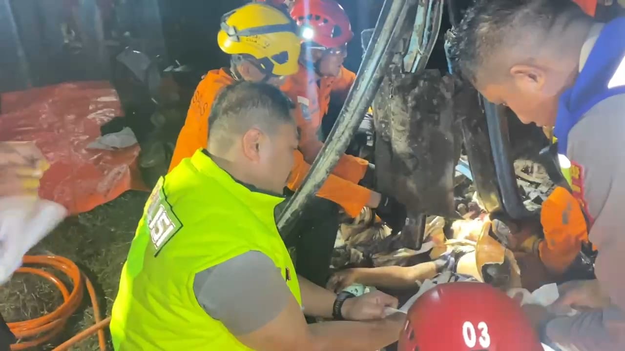 Dramatis! Detik-Detik Evakuasi Korban Kecelakaan Maut Bus Tabrak Pikap di Tol Pejagan-Pemalang