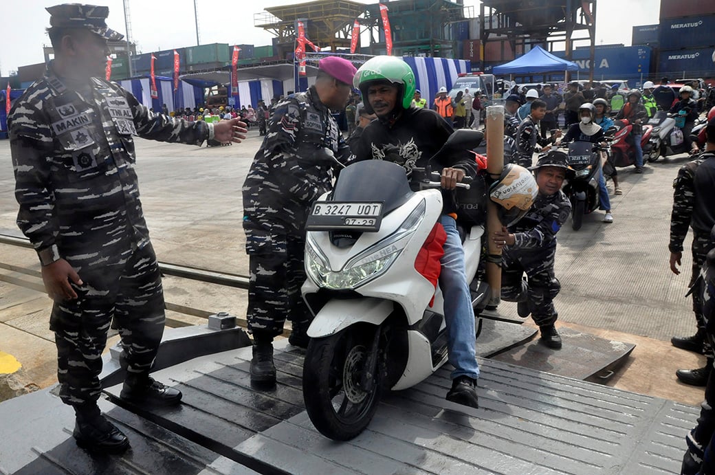 Potret Antusiasme Ribuan Pemudik Balik ke Jakarta Naik Kapal Perang KRI Banda Aceh